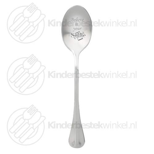 Deze losse One Message Spoon Believe in your Selfie in mat rvs 18/8 uitvoering is vaatwasmachinebestendig.