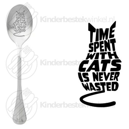 This loose One Message Spoon Time spent with cats is never wasted in matt stainless steel 18/8 quality is dishwasher safe.