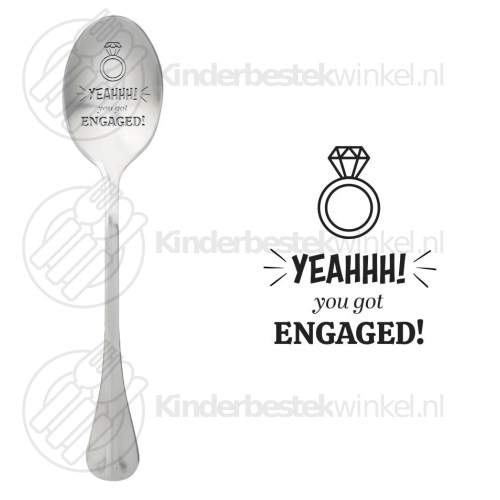 This loose One Message Spoon Yeahhh you got engaged in matt stainless steel 18/8 quality is dishwasher safe.