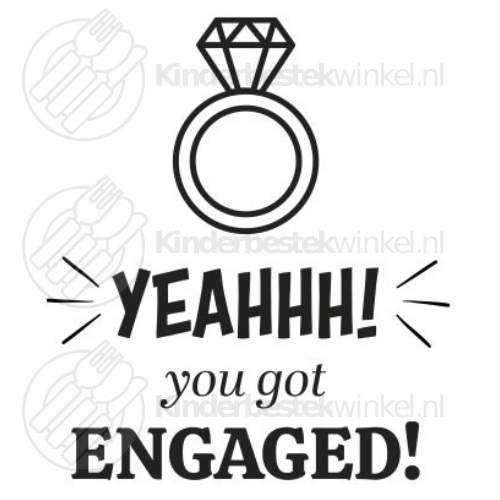 Decoration: text "Yeahhh! you got engaged!" with grummet or engagement ring