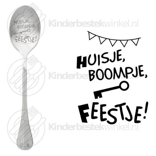 Huisje, Boompje, Feestje! textsked av One Message Spoon (lös kaffeesked med nederlandsk text).