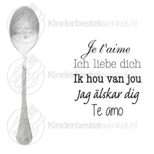 Denna lösa One Message Spoon Je t´aime i matt rostfritt stål 18/8 version tål maskindisk.