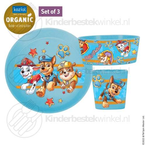 Paw Patrol barnset organic blue 3-delar av Koziol i kartong presentförpackning. Barntallrik, skål och mugg,